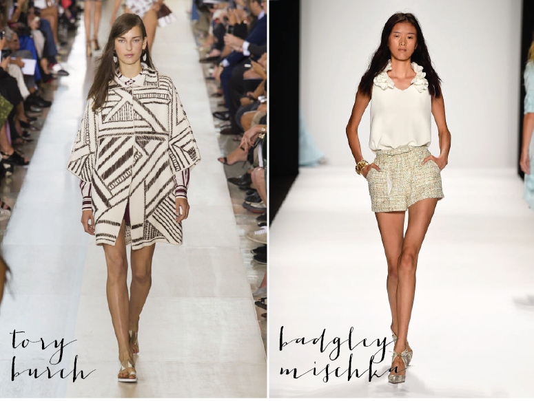 Day 6 of Fashion Week – or September 9th – was a hoot. I almost wanted to display all the photos of all the shows. Oscar de la Renta shows a lot of florals and see throughs – something seen in other runways. The jacket and the pink are just phenomenal. To this day I still get astonished by the things some designers can achieve with patterns and colours and fabrics. Elie Tahari has a very sporty-chic-city collection, very casual outfits that can be worn to your every day errands. Love the grey skirt. I’ve been descovering MM6 by Maison Martin Margiela in the last few months and I just love the relaxed, cool and outgoing style they try to aspire. Everything is loosely fit and even previous collections are totally wearable pieces. Noor show cased a lot of metallic – which were a big trend this previous spring – and patterns with pastel and subtle colours. The combinations though, are beautiful. Tory Burch isn’t a stylist I normally appreciate but, recently, I have been seeing her items on some of the fashion and lifestyle bloggers I follow and have been looking at it differently. This jacket reminds a bit of the Balmain dress Kim Kardashian and Jourdan Dunn wore to the VMA’s – very structured and a similar looking pattern. Badgley Mischka has a very Marie Antoinette inspired collection with very pastel coloured pieces. These shorts are oh-so-very-pretty and I was going to make a very similar pair last summer, from a jacket that belonged to my grandmother, until they told me how much would it cost. Once again, pictures are from here.