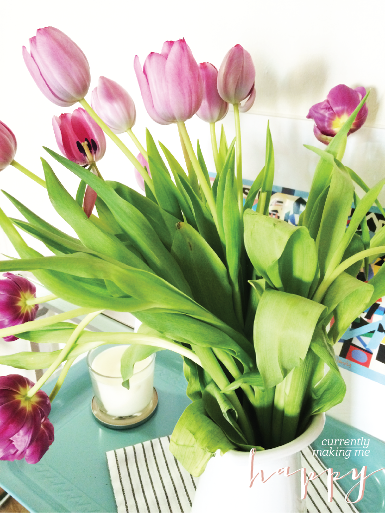 In the past week, I’ve been having problems organising my time, work and leisure. From time to time that happens – I don’t know why but it does. I’m normally highly organised, I have an agenda where I’m always writing down things to do and ideas I have, and checking them as I go. But this past week went by in a flash and my time – although very busy – was poorly managed. Tomorrow is already Monday – auch. I managed to run almost every day of the week, which made me feel awesome. I worked a lot for projects I’m involved back in Portugal, got a lot of back and forth emails and a couple of surprises – which I will tell you about throughout next week. We’re also officially counting down for two of our friends to come and visit us for some days and are overly excited and trying – already – to figure out what we’re going to do when they get here. On Friday, we had a dinner for four at our place and I was the one in charge of cooking and decorating. We cleaned our apartment, I went to the supermarket, bought flowers, delicious food, went to pick up a pie and dinner was great. Yesterday we went to the movies and saw Gone Girl. I have to say I was pleasantly surprised and the movie kept me going until the end. Two and a half hours went by in a flash, like those books you read, page after page, wanting to know what happens next. What made me happy this past week? My running, my clean apartment and the tulips that brighten up the place instantly. Have a great week you guys.