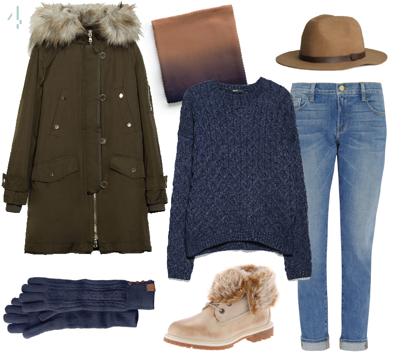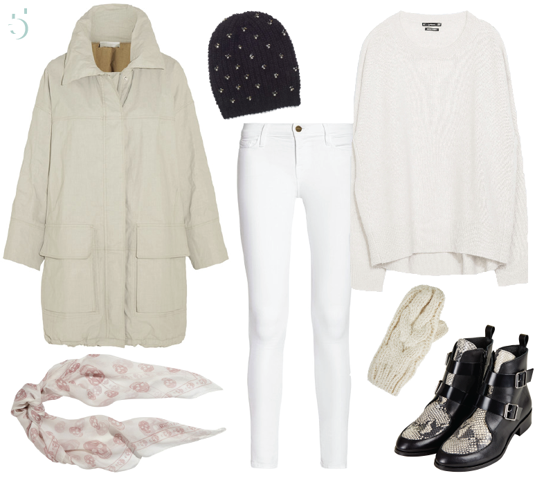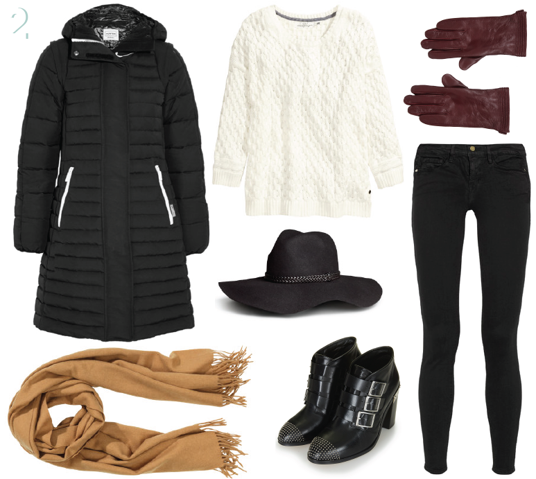 2. Hooded Down Coat from Hunter (net-a-porter), Le Skinny de Jeanne Mid Rise Jean from Frame Denim (net-a-porter),
